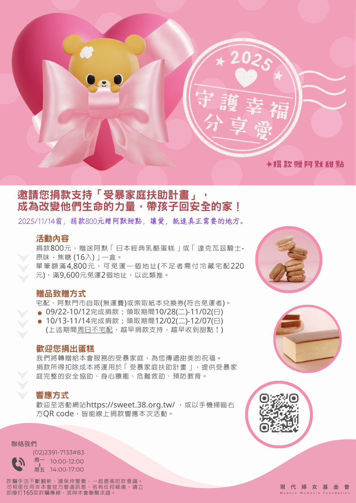 轉知:財團法人現代婦女教育基金會於近期舉辦「2025守護幸福分享愛」募款活動