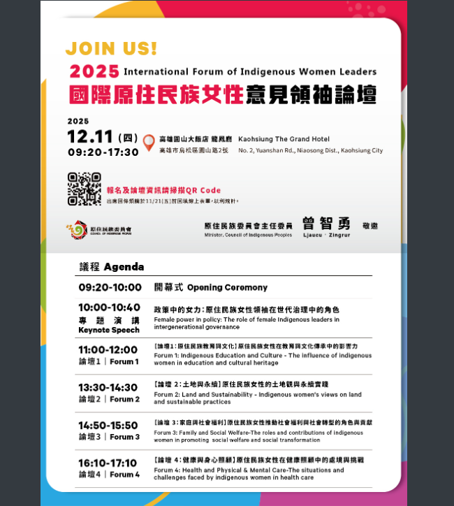 轉知:「2025國際原住民族女性意見領袖論壇」活動資訊