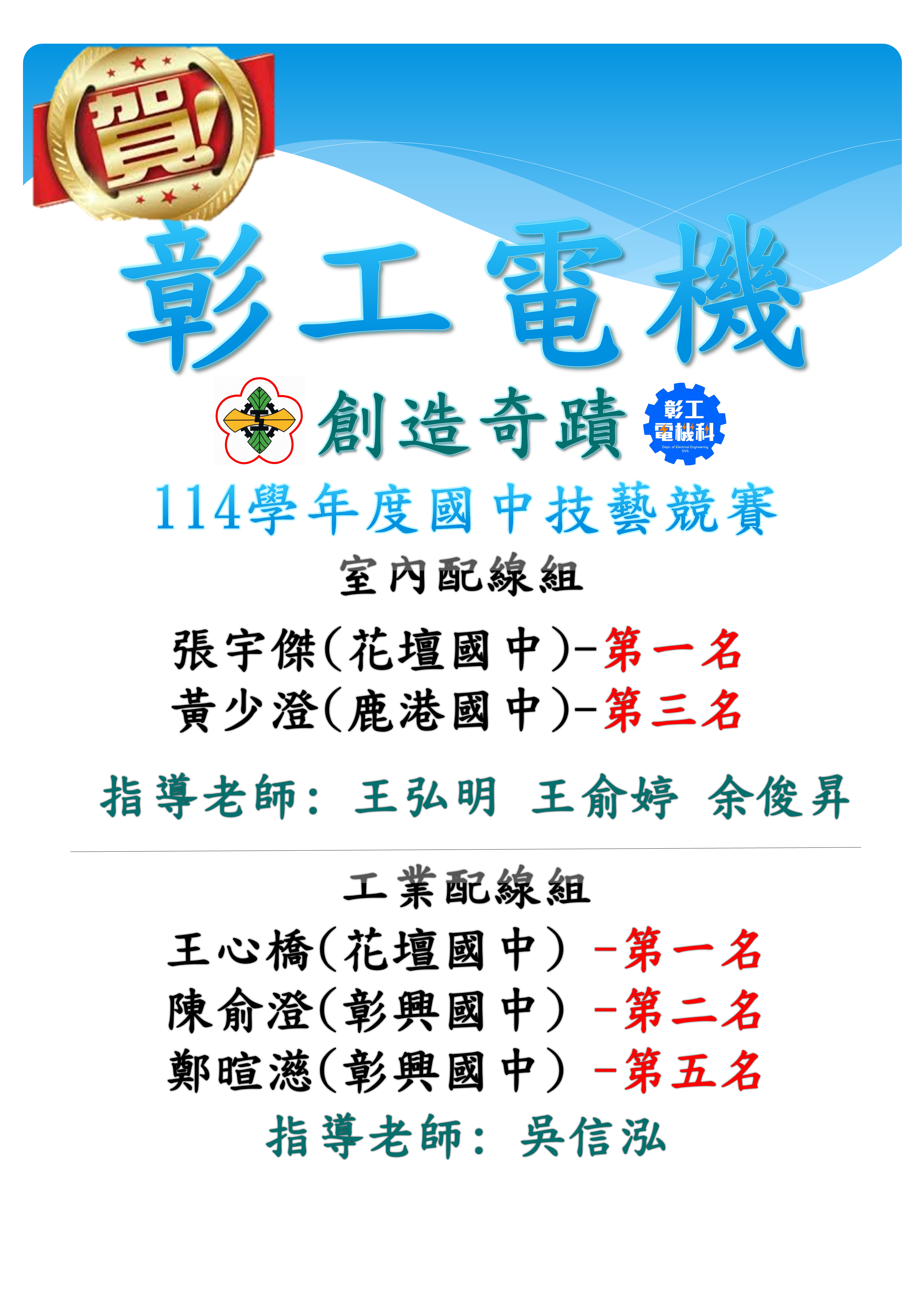 【狂賀】114學年度國中技藝競賽成績優異