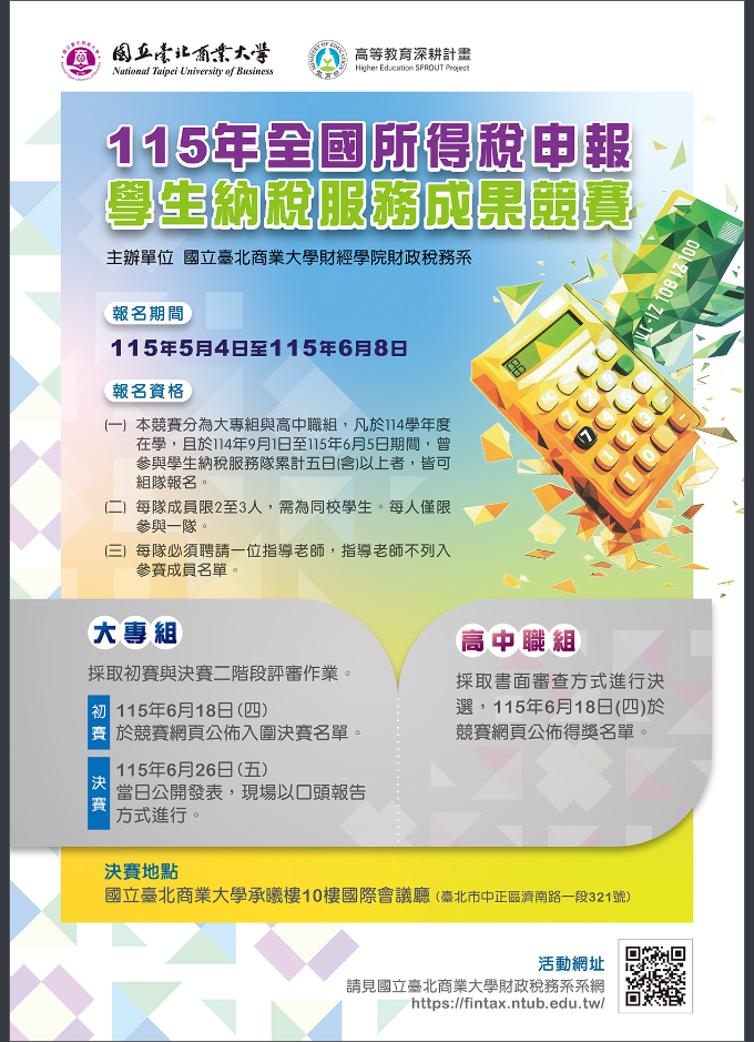 國立臺北商業大學財經學院財政稅務系辦理「115年全國所得稅申報學生納稅服務成果競賽」