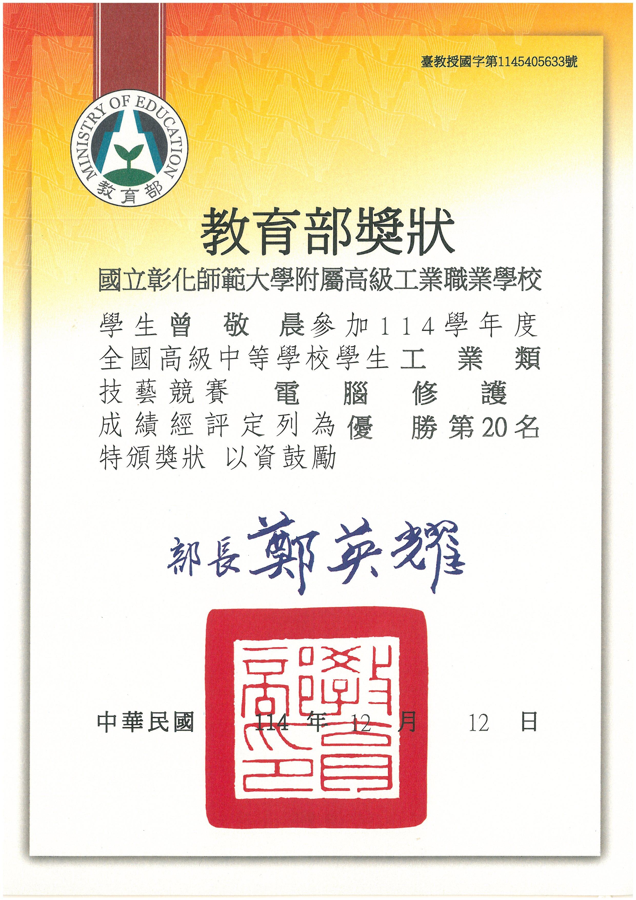 全國高級中等學校工業類學生技藝競賽榮譽榜